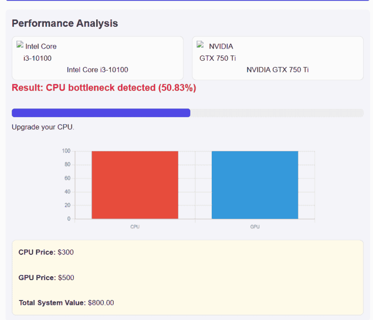 The bottleneck calculator shows results for all PC components and guides which parts need to be upgraded for optimization.